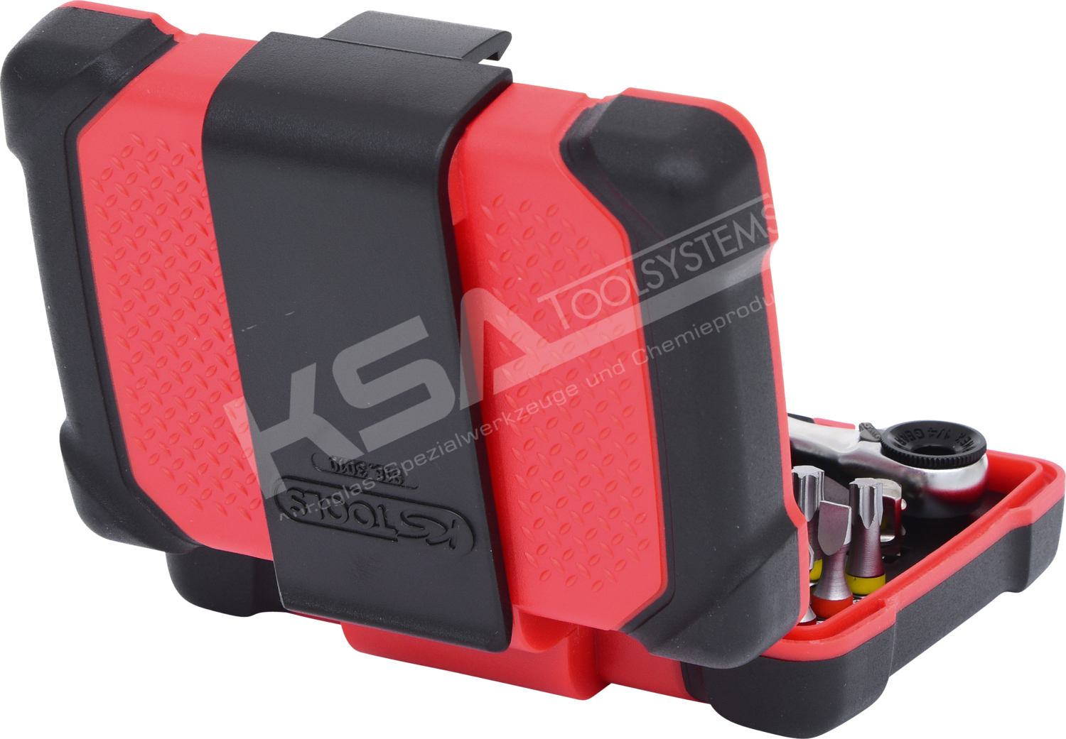 - präzise und ordentliche Anordnung der gängigsten 1/4″ Bits