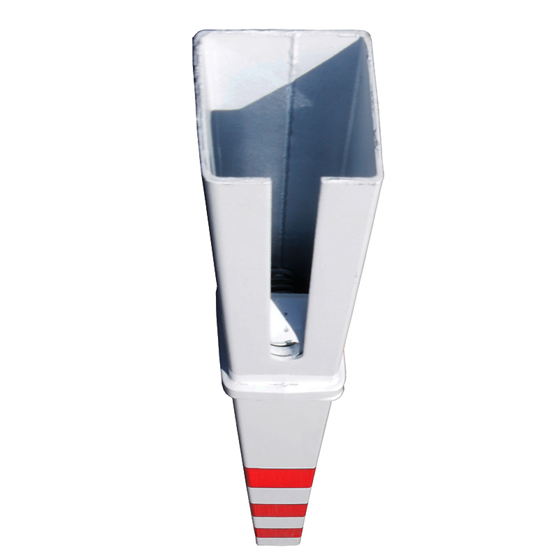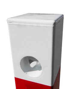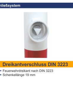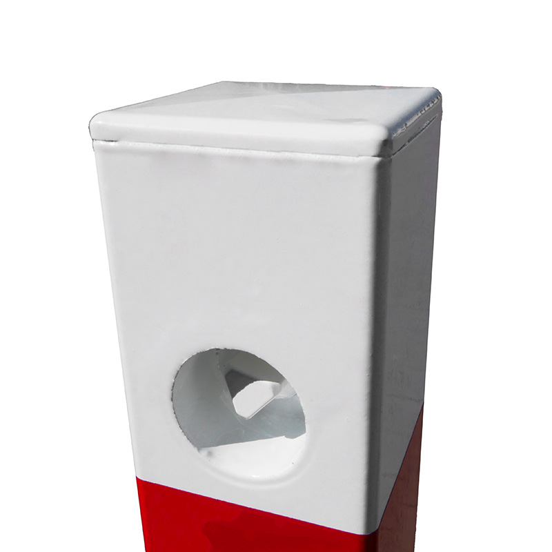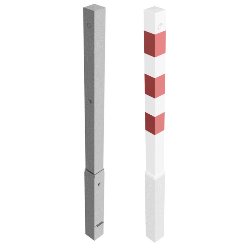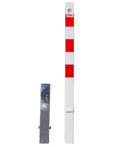 Der herausnehmbare Sperrpfosten aus Stahl mit oben liegendem Dreikantverschluss ist in Rot-Weiß mit Reflexstreifen auch im Dunkeln gut sichtbar. Sie haben die Wahl zwischen den Reflexionsklassen RA1 und RA2.