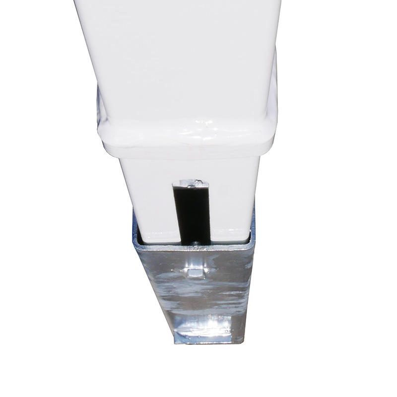 Die Bodenhülse des Absperrpfostens aus Stahl wird in den Boden einbetoniert. Der Pfosten wird geöffnet, aus der Hülse gezogen und bei Bedarf zum Absperren wieder eingeschoben. Die selbsteinrastende Verriegelung erleichtert die Aufstellung.