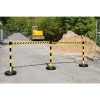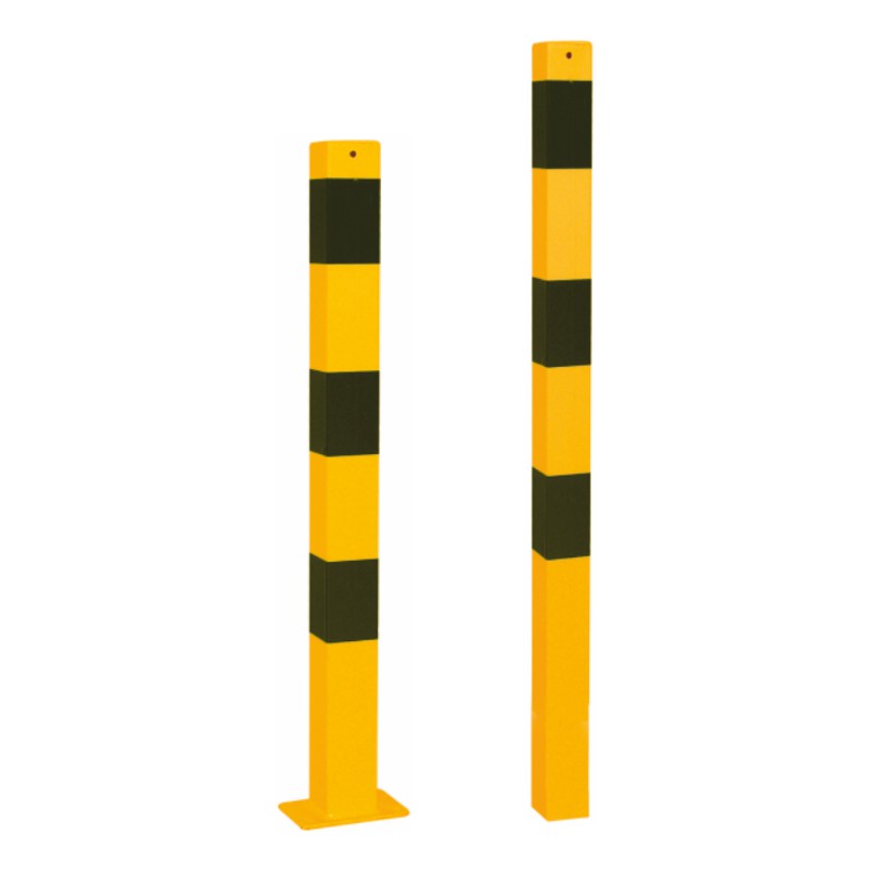 Der Stahlpfosten ist in Gelb mit dem RAL-Farbton 1003 (Abbildung ähnlich) beschichtet und mit schwarzen Streifen versehen. Perfekt für den Einsatz im Werkschutz!