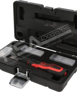 Mit den kratzfesten und gebogenen Flügel der Trimmklingen von BTB entfernen Sie Klebstoffraupen auch an schwierigen Stellen ohne Beschädigungen des Lacks.
