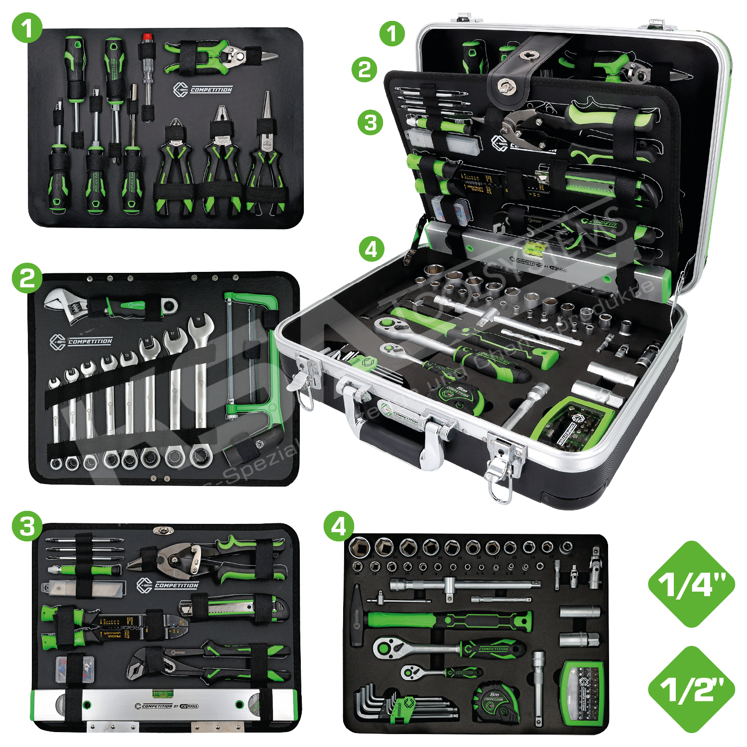 COMPETITION 1/4″+1/2″ Universal-Werkzeug-Satz, 145-tlg