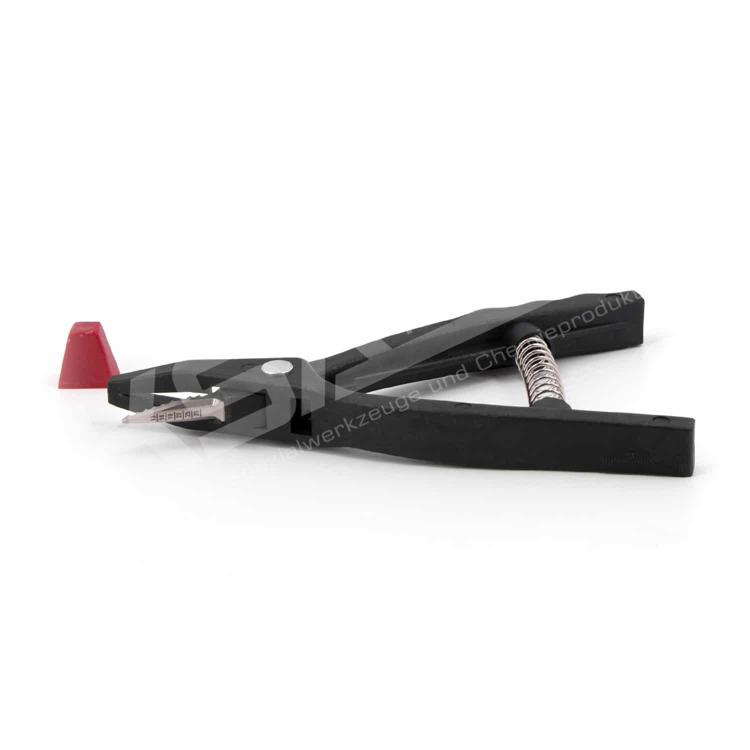 Händisches Zuschneiden von Kunststoffspitzen ist nicht nur gefährlich sondern auch problematisch wenn es um das richtige Auftragen der Kleberaupe geht. Mit dieser Zange gewährleisten Sie ein perfekt vorbereitet Düse um den Klebstoff aufzutragen und sparen dabei noch Zeit.