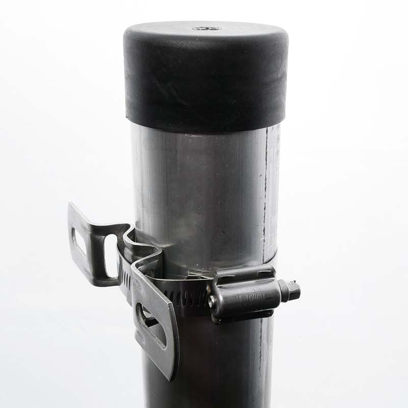 Die witterungsbeständigen Edelstahl-Spannschellen garantieren eine langlebige Lösung zur Montage von Flachschildern in vielen Größen, Formen und Materialien.