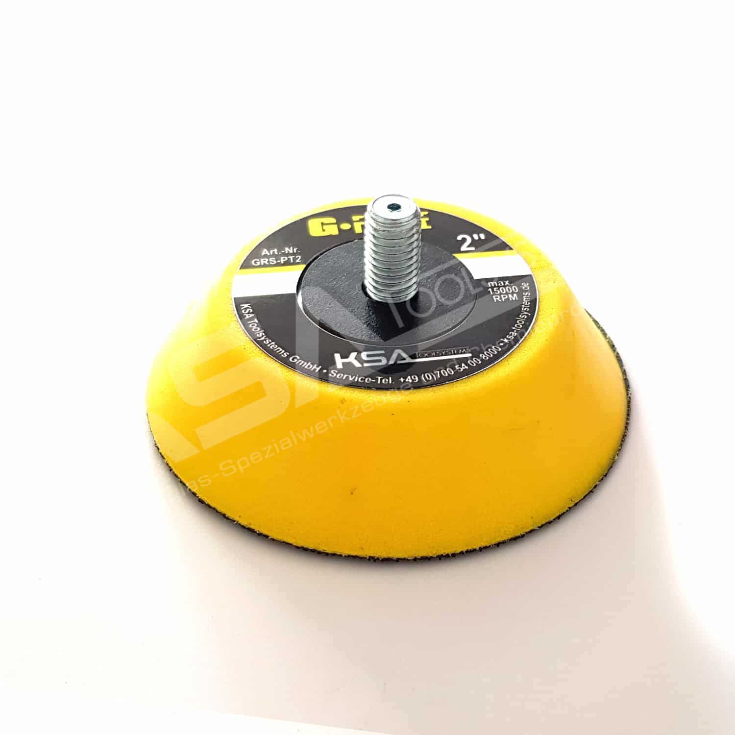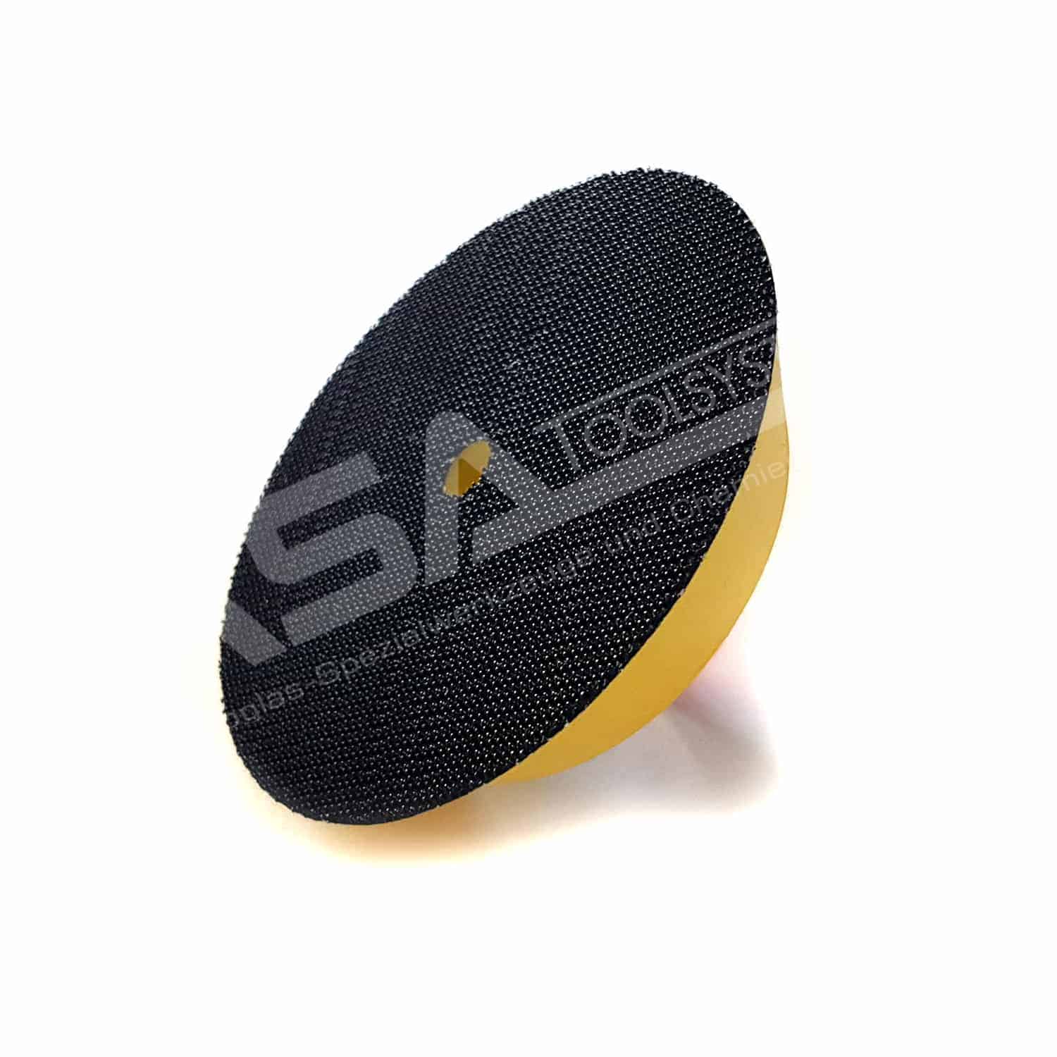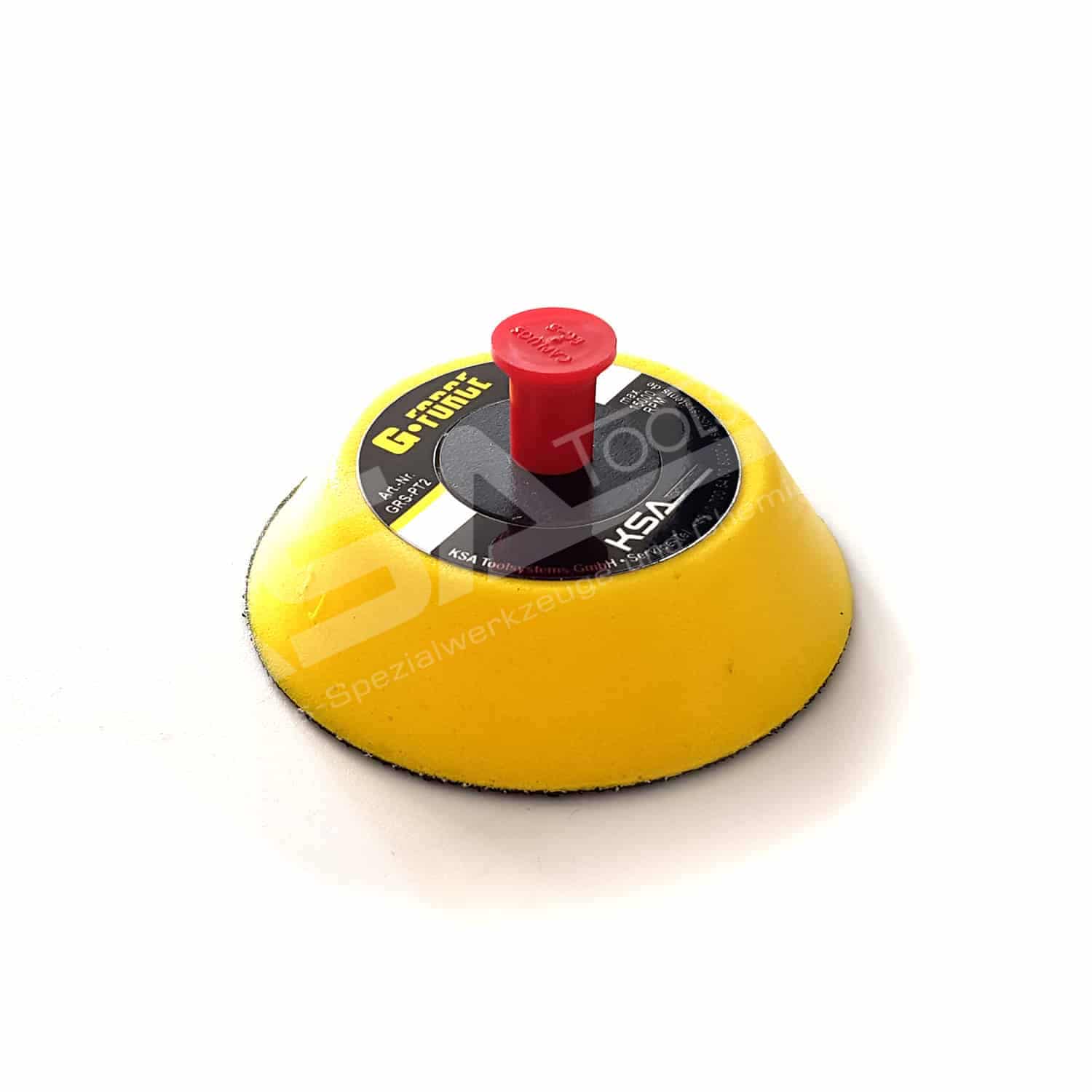 3 Zoll Polierteller mit Klettrücken zur Aufnahme von Polierscheiben beim Kratzerbeseitungssystems GRS-550 oder GForce Systemen. Der Polierteller besteht aus gepolstertem Material und ist selbstnivilierend. Dadurch ermöglichen Sie ein flaches auflegen der Polierscheiben auf dem Glas, welches weniger Vibrationen und damit Ermüdungserscheinungen des Anwenders vermindert.Durch das Wasserzufuhrloch ist dieser Klettrücken Teller auch für Maschinen mit Center-Wasser Zuführung geeignet.