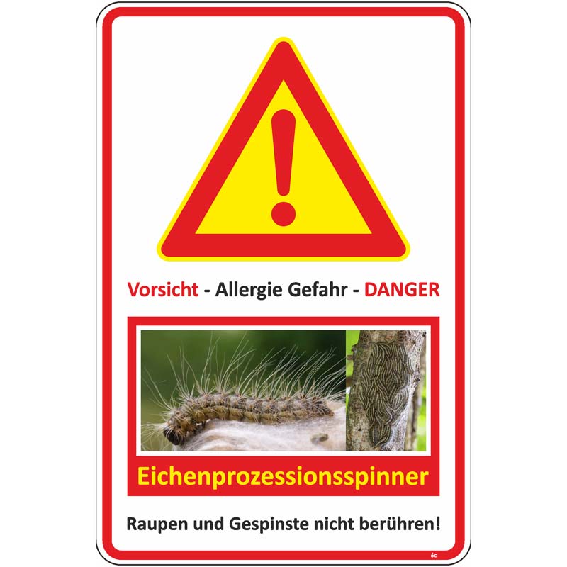 Hinweisschild Vorsicht Eichenprozessionsspinner mit Bild im Überblick