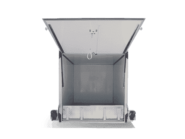 - Seitenwände und Dach aus Mehrschichtholz 14 mm stark mit GFK-Beschichtung