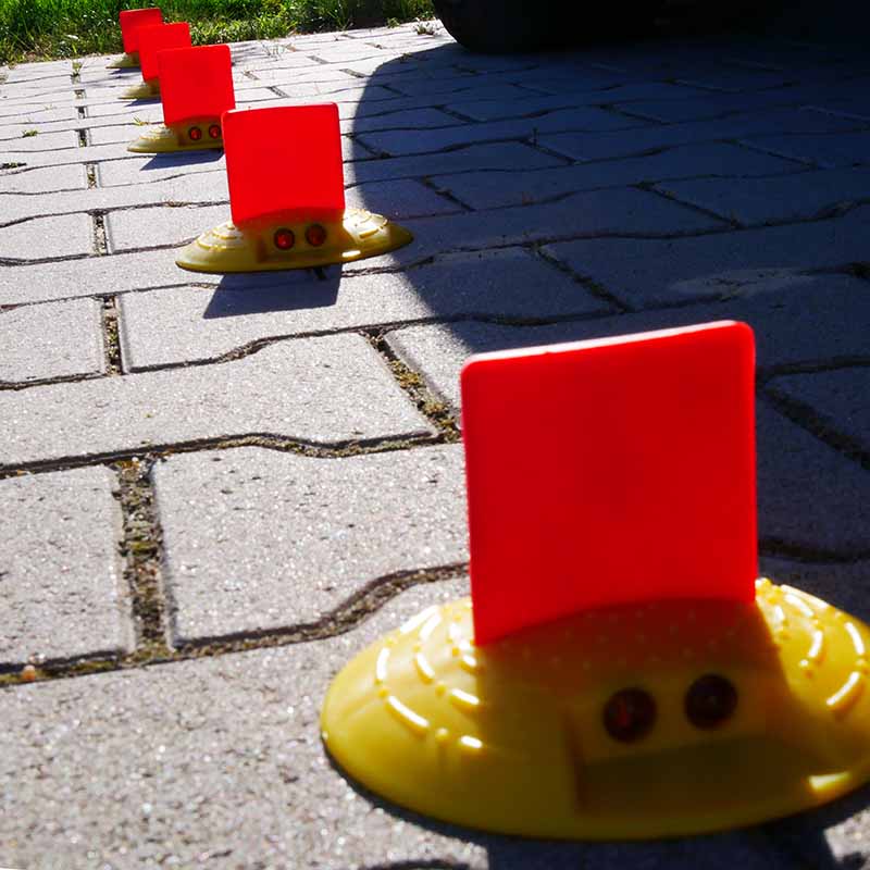 Der Kunststoffknopf mit Gummifahne wird auf glatten Untergründen wie Asphalt, Beton oder Verbundstein aufgeklebt. Der Boden sollte staubfrei und trocken sein. Zum Aufkleben von 80 Markierungsnägeln dieser Größe werden ca. 10 kg Kleber benötigt. Wir empfehlen unseren bewährten 2-Komponenten-Kleber – bei Bedarf bitte separat mit bestellen!