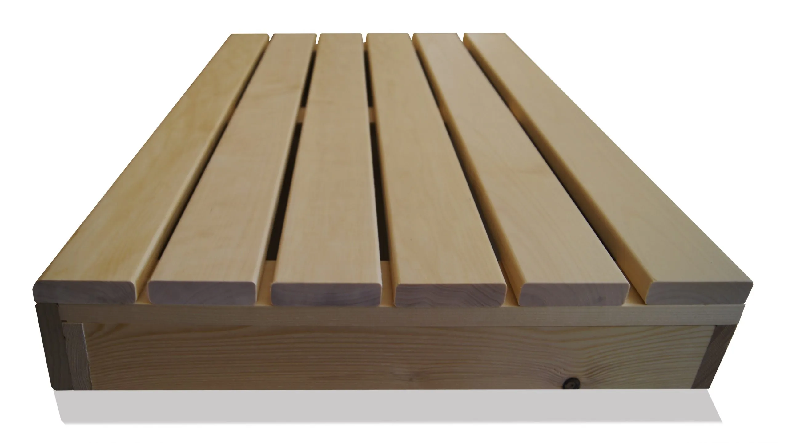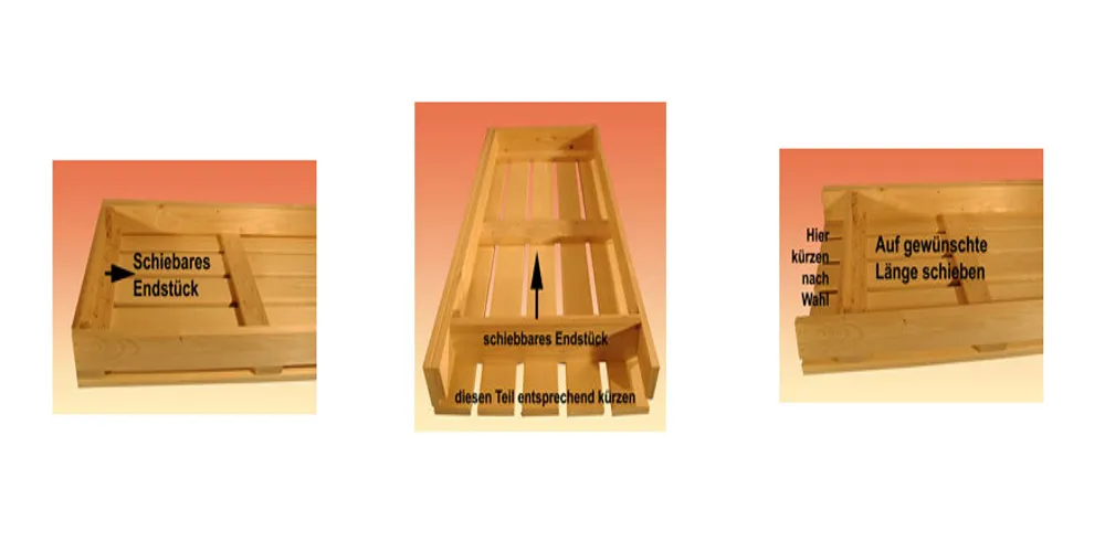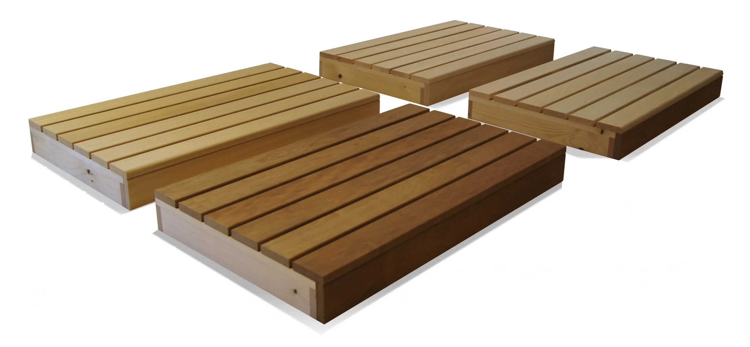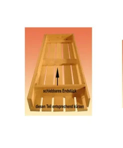 Die Saunaliegen sind in den folgenden Längen lieferbar: 125 cm – 133 cm – 152 cm – 168 cm – 186 cm – 194,5 cm – 221 cm und natürlich Sondergrößen.