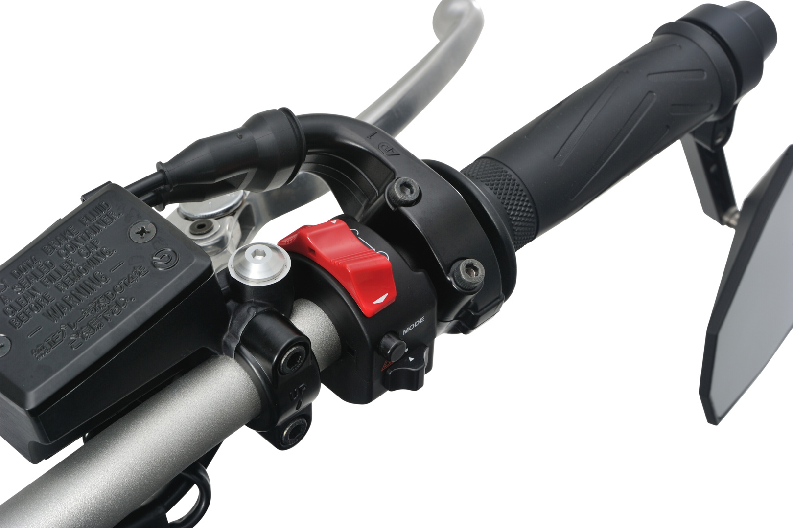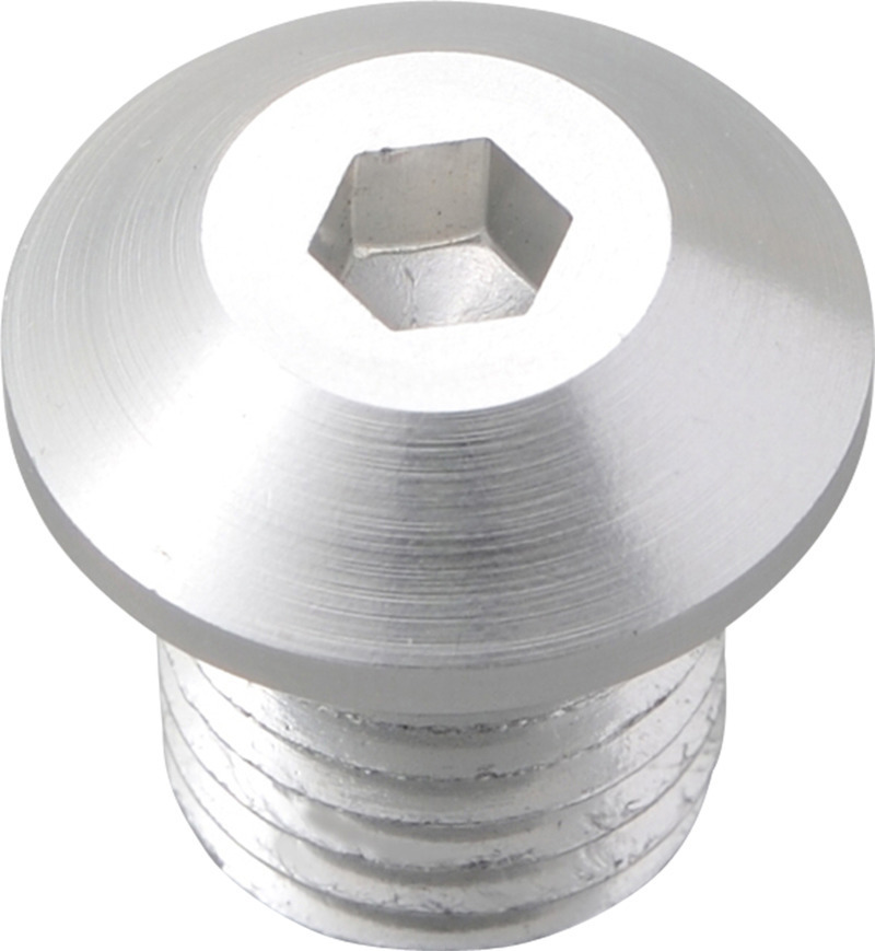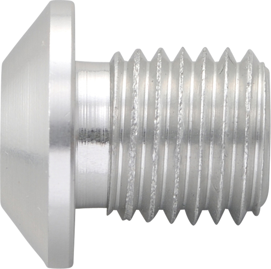 CNC gefräste Aluminium Abdeckschraube in silber eloxiert mit M10 x P1.25 Linksgewinde zur Abdeckung eines ungenutzten Spiegelgewindes an den Lenkerarmaturen.