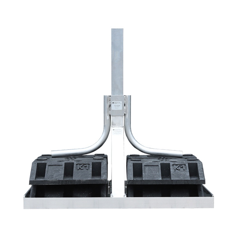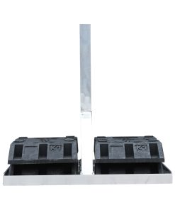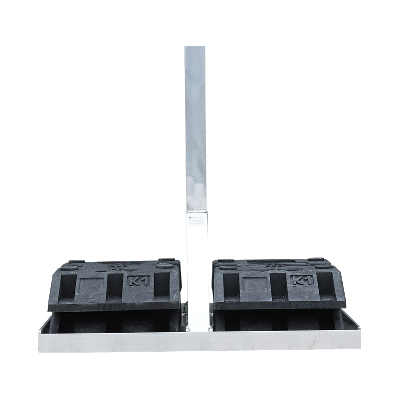 In den Aluminiumständer setzen Sie bis zu 10 K1-Fußplatten ein, je 5 links und rechts des Holms. Durch die umlaufende Winkelkante ist ein Verrutschen der Platten nicht möglich.