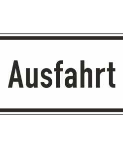 Das Verkehrszeichen 1007-37 „Ausfahrt“ ist ein weißes Zusatzzeichen mit schwarzem Rand. Es trägt die schwarze Aufschrift „Ausfahrt“.