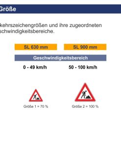 - Kombination mit Zusatzzeichen zur Entfernung und Länge sowie in besonderen Situationen auch mit Geschwindigkeitsbeschränkung möglich