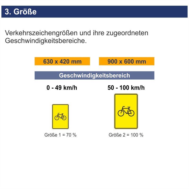 Einsatz: Das Richtzeichen 442-53 kommt bei der Umleitungswegweisung außerhalb von Autobahnen zum Einsatz und ist ein Vorwegweiser für bestimmte Verkehrsarten, in diesem Fall für Fahrräder. VZ 442-53 kann durch ein Zusatzzeichen zur Angabe der Entfernung bis zum Umleitungsbeginn ergänzt werden.