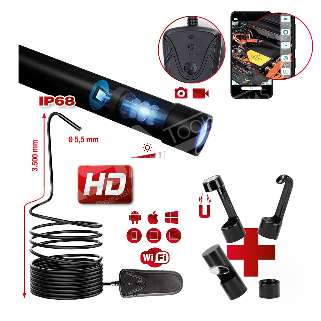 - inklusive Haken, Magnet, Spiegel und Schutzkappe zum Aufschrauben auf den Sondenkopf