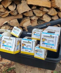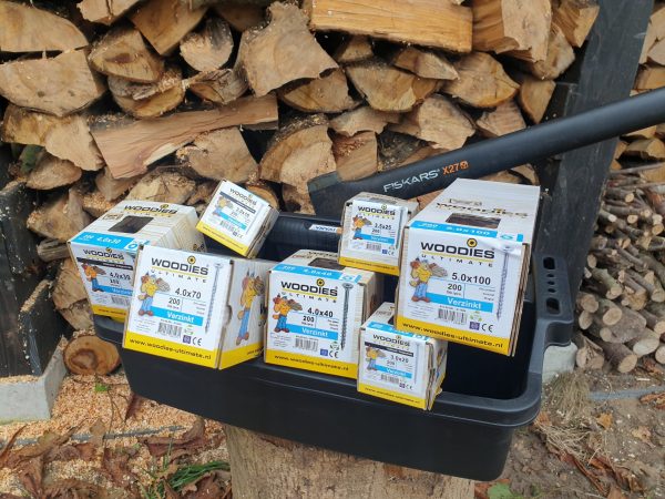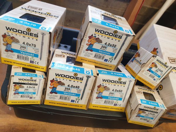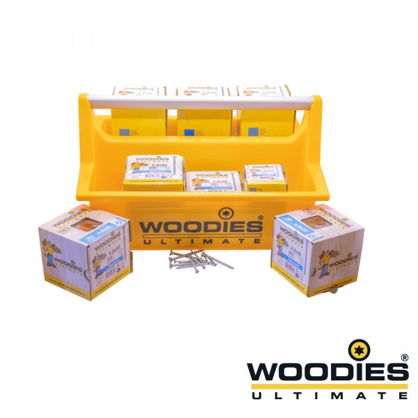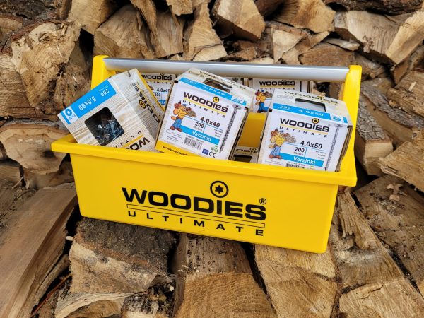 Handliches Sortiment gefüllt mit verschiedenen Boxen Woodies Spanplattenschrauben verzinkt Halbgewinde und einer kostenlosen Woodies Tragebox!