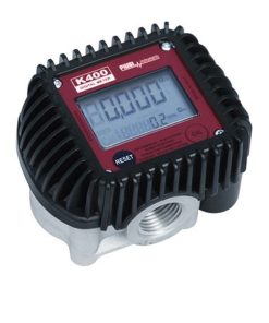 Digitaler Zähler K24, kalibrierbar, Messbereich 10-120 l/min, Anzeige 5-stellig, Gesamtmenge 6-stellig, beidseitig 1″ AG, mit Muffe 1″