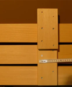 Die Montage der Sauna Zwischenbankverleidung erfolgt von hinten an die obere Liege.